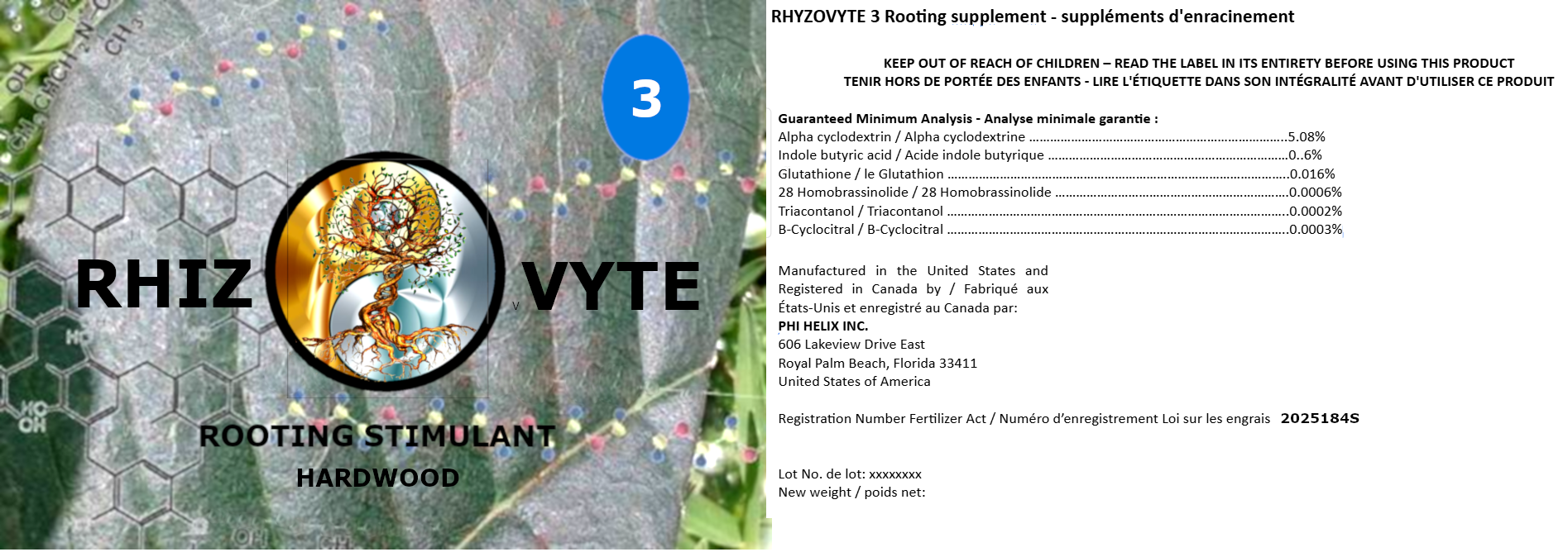 RHIZOVYTE ROOTING STIMULANT IS A STATE OF THE ART FORMULATION USING THE LATEST ADVANCES IN PLANT PROPAGATION TECHNOLOGY. WE HAVE COMBINED RECENT BREAKTHROUGHS FOUND IN THE SCIENTIFIC LITERATURE WITH A NOVEL DELIVERY SYSTEM TAKEN FROM THE PHARMACEUTICAL INDUSTRY. THE RESULT IS A POWERFUL TOOL THAT FACILITATES INCREASED PLANT VIGOR AND OVERALL PRODUCTIVITY. RHIZOVYTE CAN BE USED AS A POWDER, GEL OR SOLUTION. RHIZOVYTE IS CFIA REGISTERED FOR USE IN CANADA.